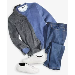 New β Alfani Men’s Brushed Herringbone Dual-Pocket π Shirt-Jacket, Double-Knit Sweater & Rinse Straight Fit Stretch π Jeans, Created For Macy’s Grey Combo β¨