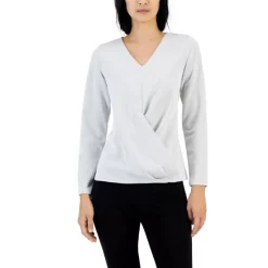 Coupon π Alfani π© Women’s Metallic Wrap-Front Knit Top, Created For Macy’s Soft White π