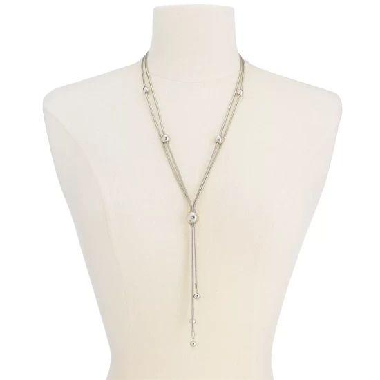 A fashionable double stranded lariat necklace is adorned with polished beads in this chic piece from Alfani.