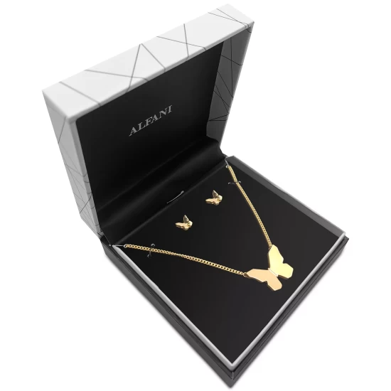 Drawing beauty from nature’s creatures, this Alfani pendant necklace and stud earrings set features a gleaming butterfly silhouette.