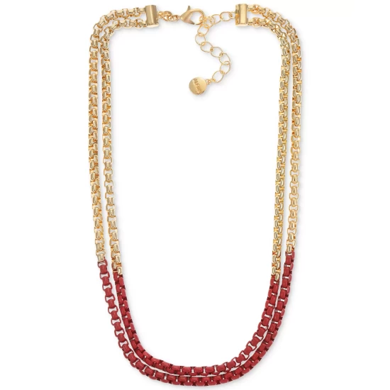 Alfani has your fashion front covered with the cool partially color-coated links of this layered collar necklace.