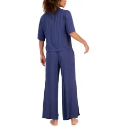 The chic styling of a cropped-length top and front-slit hem make Alfani’s super-soft wide-leg pajama set your new favorite.