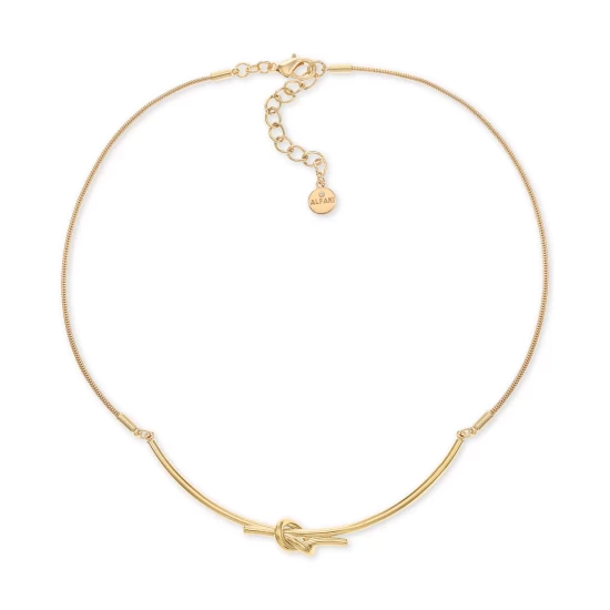 Tie your style together with this golden knotted charm frontal necklace from Alfani.