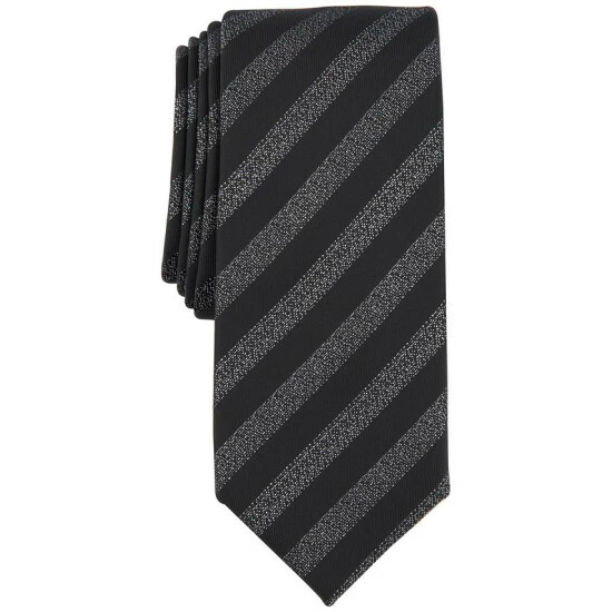 Streaked down the blade with robust, cascading stripes, Alfani’s slim tie completes your formal look with a flourish of elegance and timeless, minimal design.