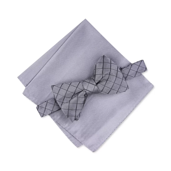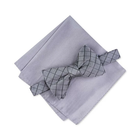 The grid pattern bow tie and matching-tone solid pocket square in this two-piece set from Alfani provide your business or formal style with the fashionable edge you need to make your look pop.