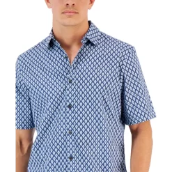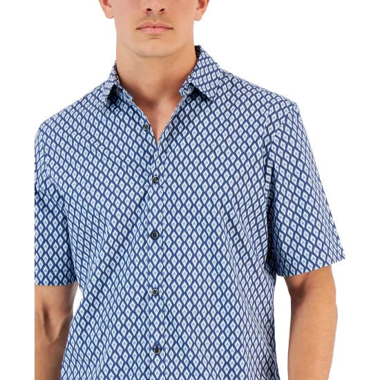 Designed for easy styling as a solo piece or as a layer, this geo print short-sleeve shirt from Alfani is in pure, breathable cotton for all-day comfort.