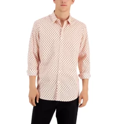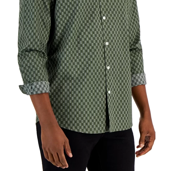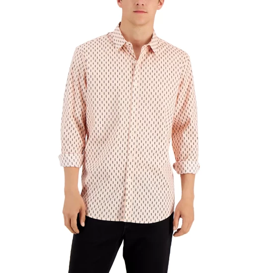 Alfani adds the ultimate upgrade to your casually cool look with the classic button-down styling and geometric print of this long-sleeve shirt.