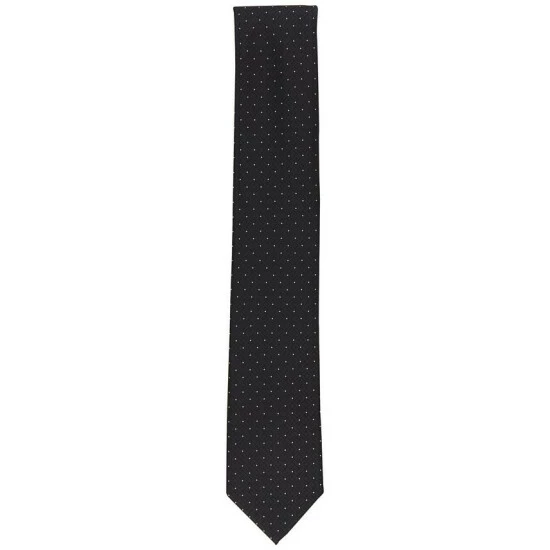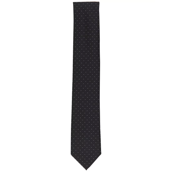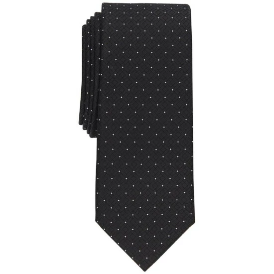 Printed down the blade with a cascading array of dots and geometric patterns, Alfani’s slim necktie is a must-have addition to your collection of crisp formal looks.