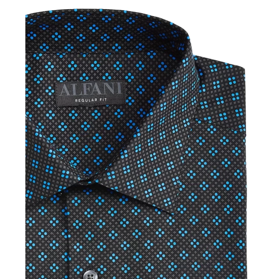 Designed for immeasurable comfort and timeless style, this stain-resistant Alfani dress shirt features an allover diamond dot pattern for a striking aesthetic.