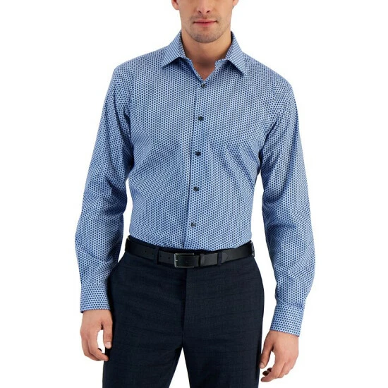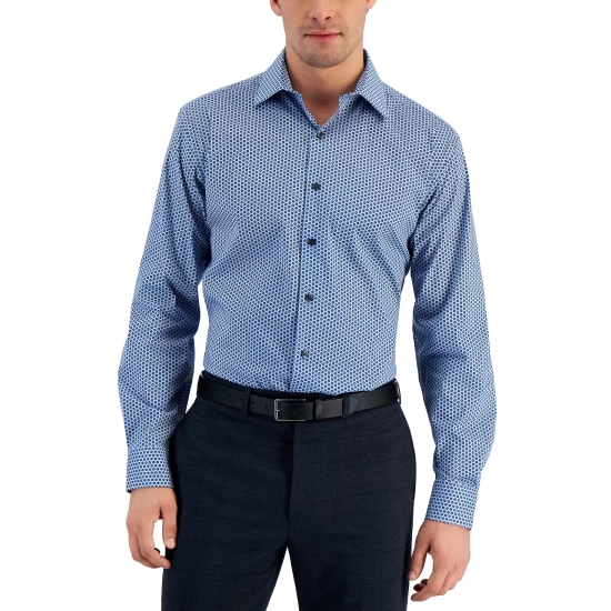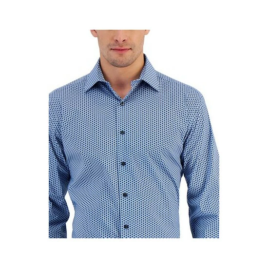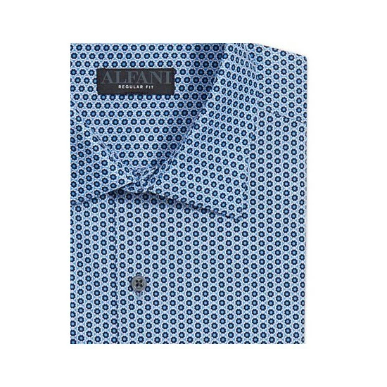 Styled with a modern medallion pattern and stain-resistant stretch fabric, this dress shirt from Alfani takes your professional style and comfort to the next level