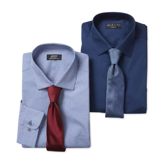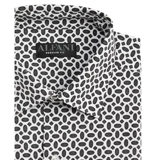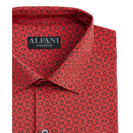 In breathable stretch fabric for maximum comfort, this geo print Alfani shirt makes a great travel companion thanks to its wrinkle-resistant technology.