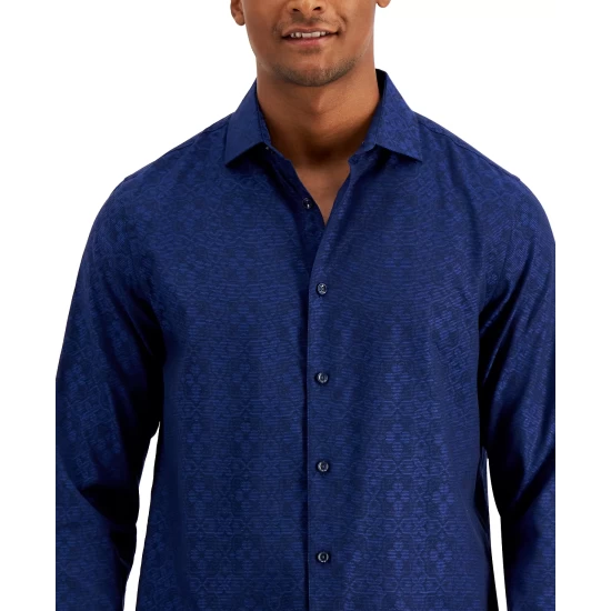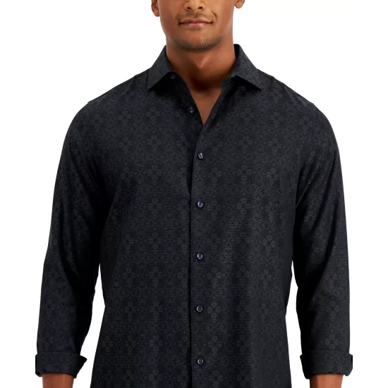 Give your casual look a fresh modern feel with the bold medallions printed on this soft cotton shirt from Alfani.