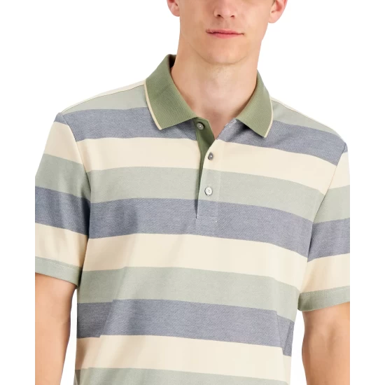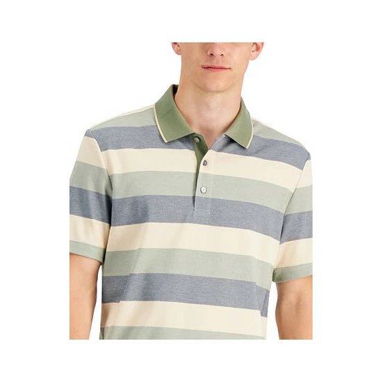 Give your casual look a fresh feel with the comfortable fit and bold stripes styling this polo shirt from Alfani.