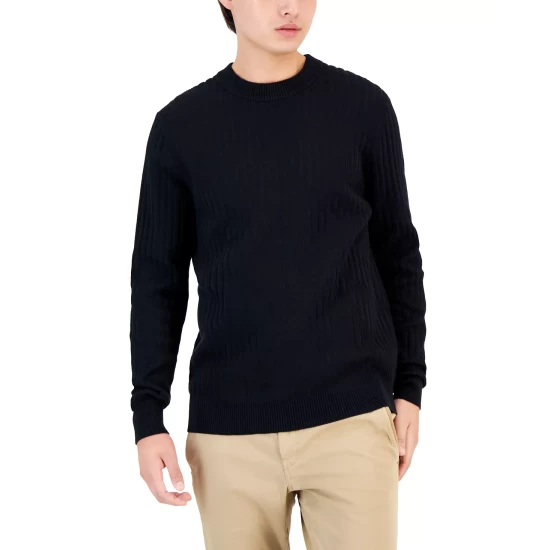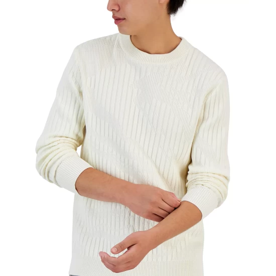 Modern style collides with classic details in this Alfani sweater, showcasing a traditional marble design and allover ribbing.