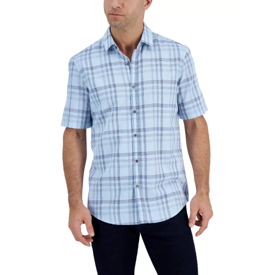 Signature style starts here with Alfani’s classic button-down, designed with short sleeves and a textured fabrication.