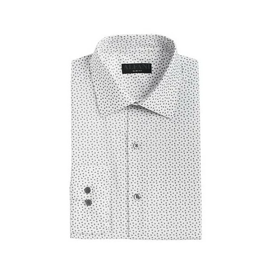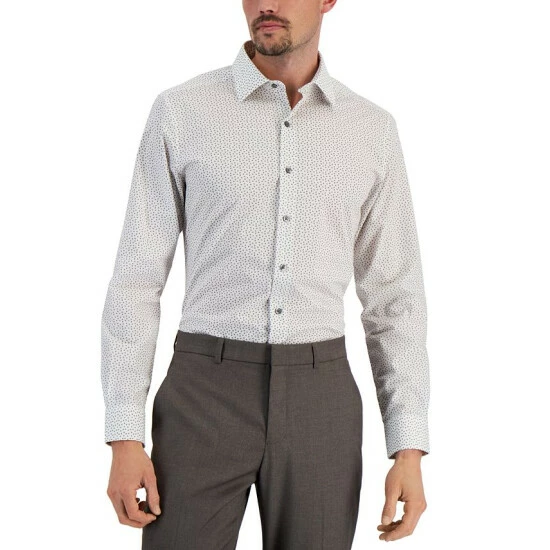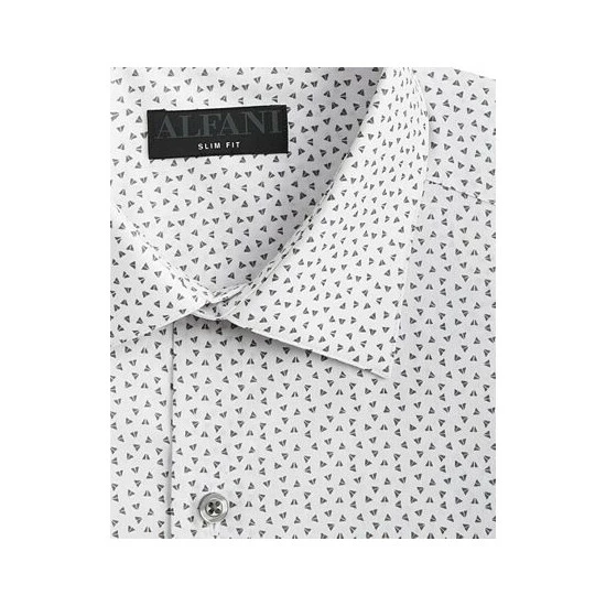 Outfitted with stain-resistant stretch fabric and an angled geometric print, Alfani’s slim-fit dress shirt brings versatility and comfort-forward style to your growing formal collection.