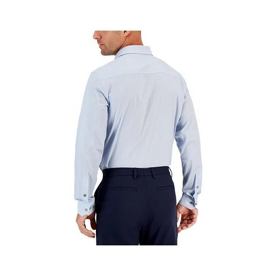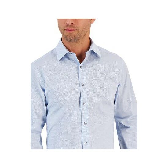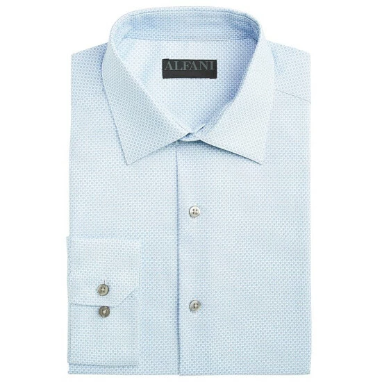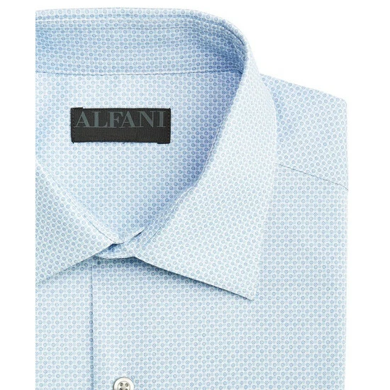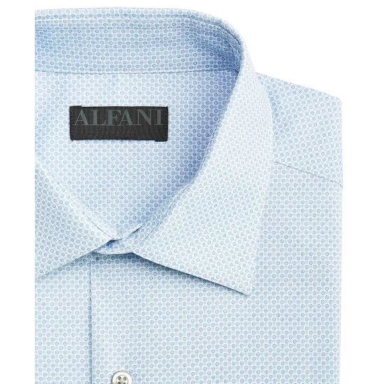 Built to resist stains and provide long-lasting comfort, this slim fit, dot geometric-print dress shirt from Alfani will make a valuable addition to your professional wardrobe.