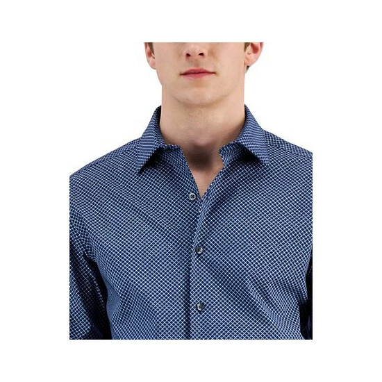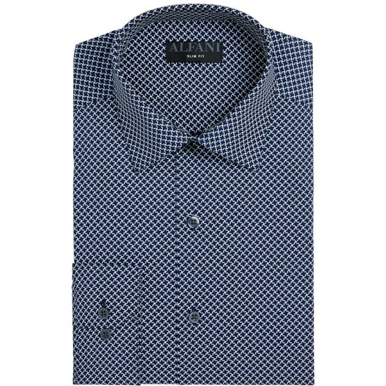 Continue the journey of perfecting your formal collection with this slim, puzzle-print dress shirt from Alfani, made from stain-resistant stretch fabric that moves with you every step of the way.