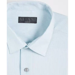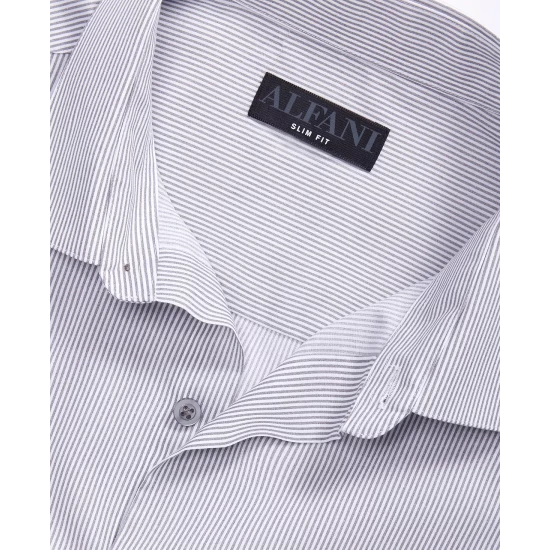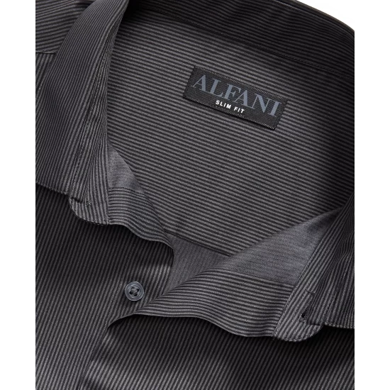 Update your professional essentials with the refined slim fit and polished stripes of this crisp dress shirt from Alfani.
