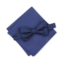 Elevate your formal or unique business-look with the timeless meets modern elegance of a fresh metallic-tone bow tie and pocket square as offered by this set from Alfani.