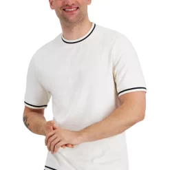 Ribbed-knit trim and contrast tipping lend a refined feel to this classic crewneck from Alfani.