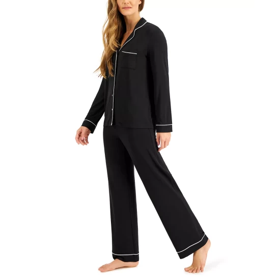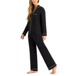 Super-soft and totally comfy, settle in for the night with this classic long-sleeve notch-collar pajama set from Alfani.