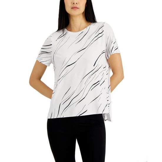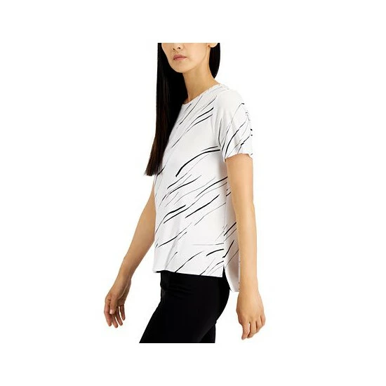 A unique print makes this petite top from Alfani a stand-out addition to your casual wardrobe.