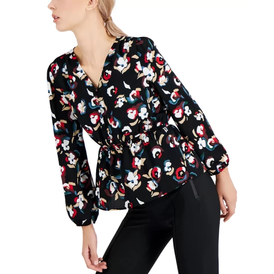 Alfani’s petite peplum top adds effortless charm to any outfit, smocked at the waist for a figure-flattering appeal.