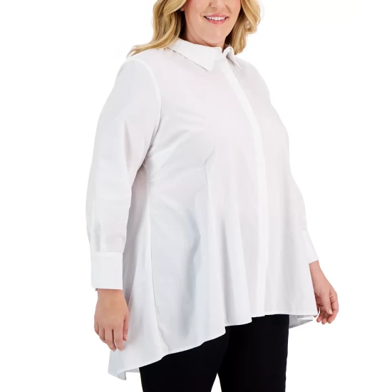 Whether you’re headed to work or play, you’ll look sophisticated doing it in this high-low plus size tunic by Alfani.