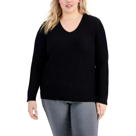 A touch of shine lends a luxe look to this sweater from Alfani, wear it alone or over a shirt for a chic layered finish.