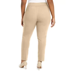 Alfani’s plus size pants are a work wardrobe staple, featuring effortless pull-on styling and tummy control for a comfortable, flattering fit. Sleek with a skinny silhouette and a solid hue makes them an ideal starting point for any outfit. Pair the modern high rise design with a contrast-colored blazer, timeless button-front blouse and statement heels for a day at the office, or swap out those items for a relaxed-fit T-shirt, faux-leather moto jacket and ankle boots for a fun night out.