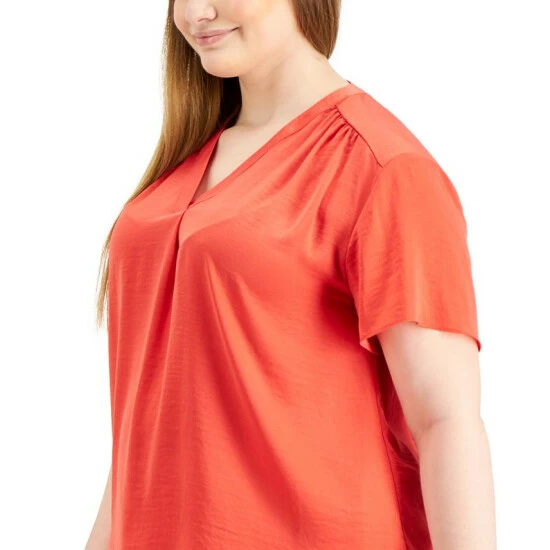 Effortless with a classic V-neck and flowing short sleeves, this plus size top from Alfani is a versatile wardrobe essential.