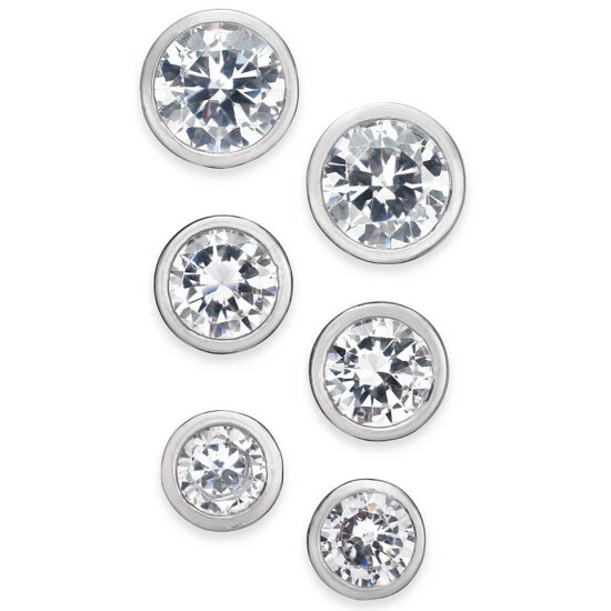 Alfani gets you sparkling in small, medium and large with this set of modern bezel-set crystal stud earrings.