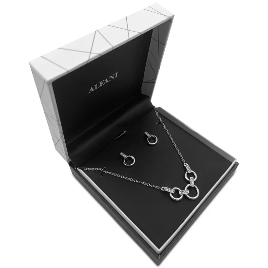 A touch of sparkle joins a lot of chic style in this boxed statement necklace and drop earrings set from Alfani.