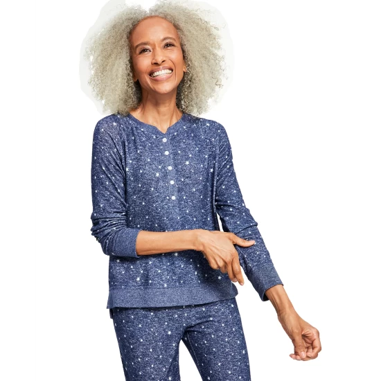 Hacci fabric makes Alfani’s long-sleeve henley top and jogger pants the ideal loungewear duo for dreamy comfort from head to toe.
