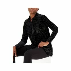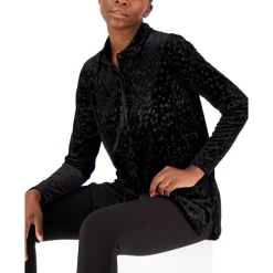 Lend a little luxe to your shirt collection with this velvet version from Alfani designed with a chic burnout print.