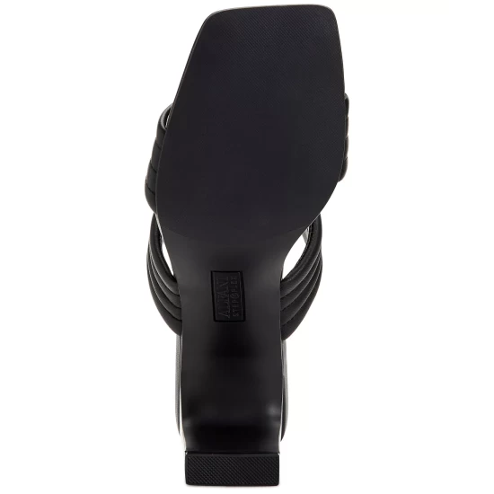 A sleek block heel elevates the sleek quilted straps and sophisticated square toes of the Stantonn sandals from Alfani.