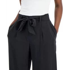 A stylish combination of tailored and soft, these Alfani trousers feature a tie belt and wide legs accented with pleats at the front.