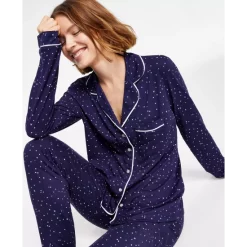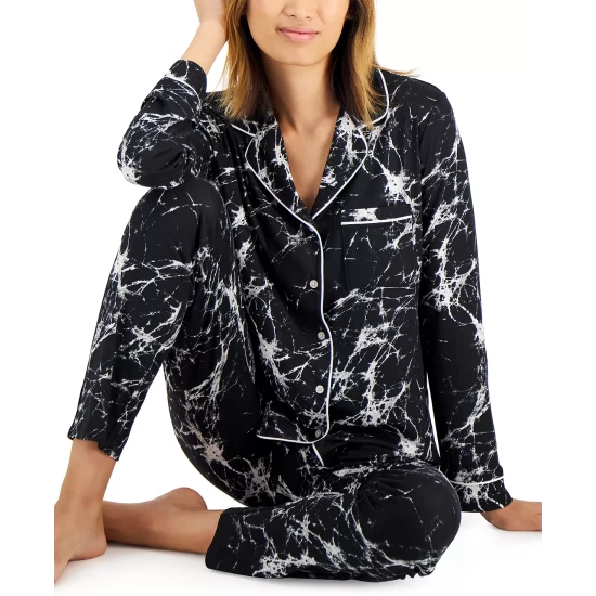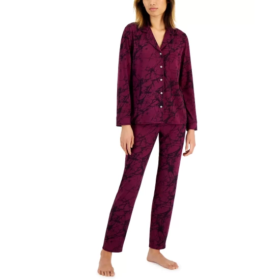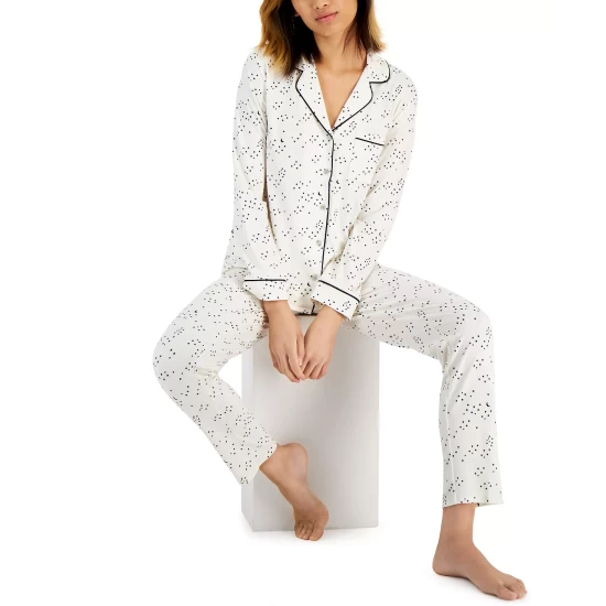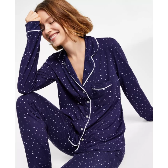 Comfy, cozy nights start with this classic pajama set from Alfani designed with a chic modern print.