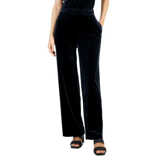 Luxe it up in these flowy pants from Alfani. Styled entirely from velvet, they feature a trending wide-leg and effortless pull-on silhouette.